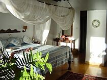 Peering through one teakwood door at Peponi Hotel, one faces the